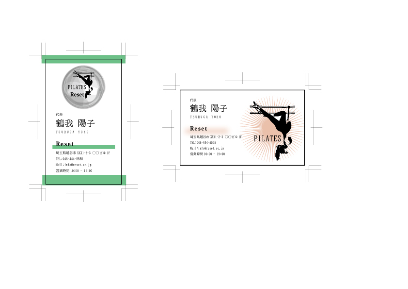 説明:マシンピラティス店の名刺を作成しました。